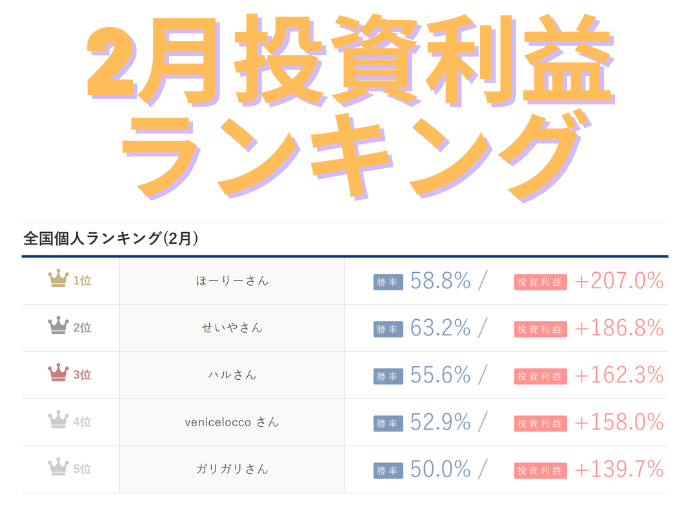 【月間投資利益ランキング】2026年2月トップはほーりーさん【+207.0%】