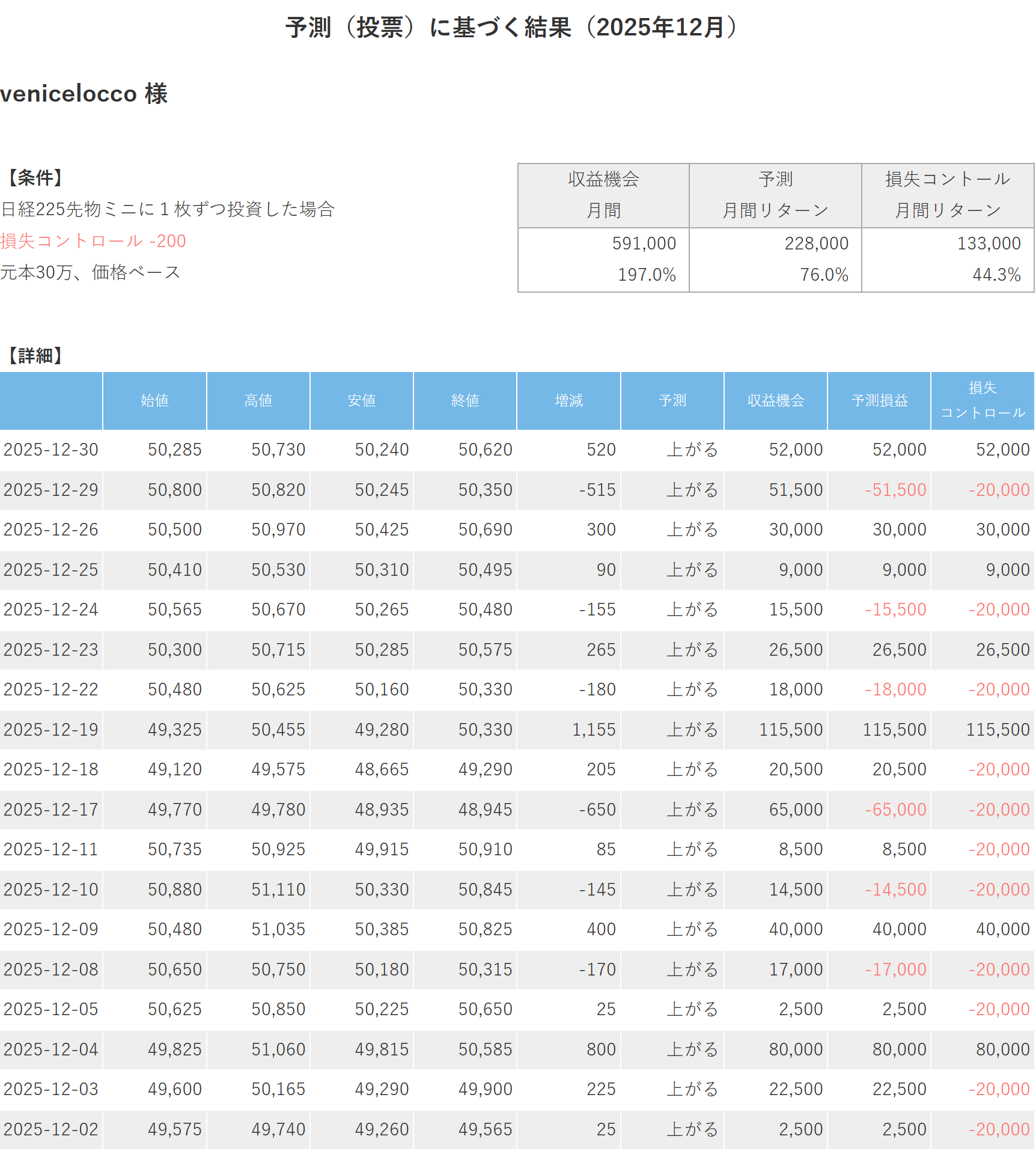 【月間投資利益ランキング】2025年12月トップはveniceloccoさん【+76.0%】